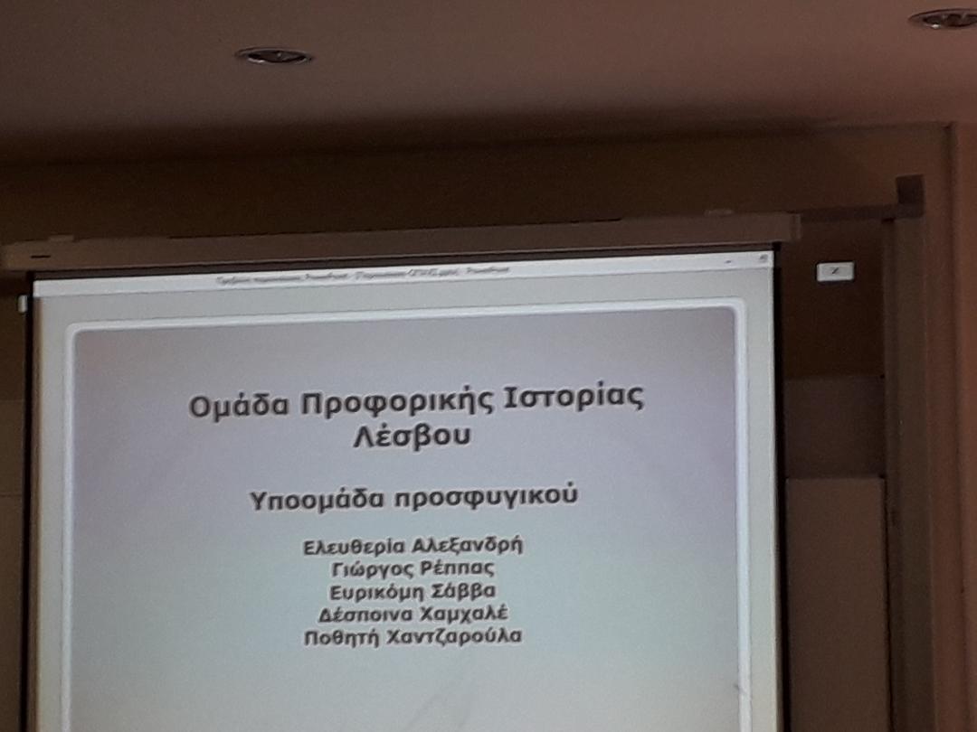 Εισηγήτριες: Ελευθερία Αλεξανδρή,Κοινωνικός Ανθρωπολόγος/Ομάδα Προφορικής Ιστορίας Λέσβου & Ευρικόμη Σάββα,Εκπαιδευτικός- Ιστορικός/ Ομάδα Προφορικής Ιστορίας Λέσβου.